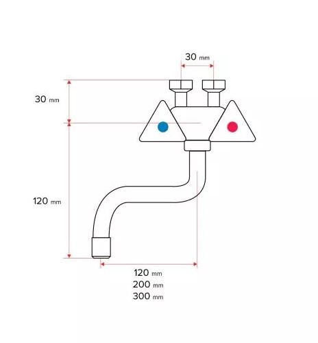 Vodovodní beztlaková nástěnná dřezová klasická baterie, délka výtokového výtokového ramínka 30cm.