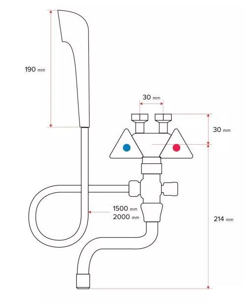 Vodovodní beztlaková nástěnná vanová klasická baterie, výtokové ramínko 30cm, sprchová hadice 150cm (bílá-chrom), ruční jednopolohová sprcha, držák sprchy a přepínač.