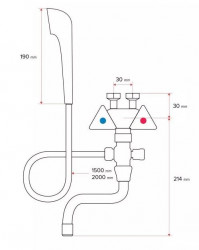 Nástěnná klasická vanová baterie k ohřívači s trubkovým ramínkem 30cm, hadice 200cm, chrom