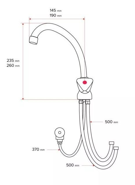 Vodovodní beztlaková stojánková dřezová/umyvadlová klasická baterie, výtokové ramínko 22cm.