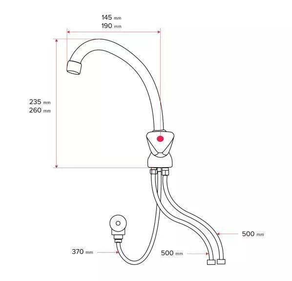 Vodovodní beztlaková stojánková dřezová/umyvadlová klasická baterie, výtokové ramínko 22cm.