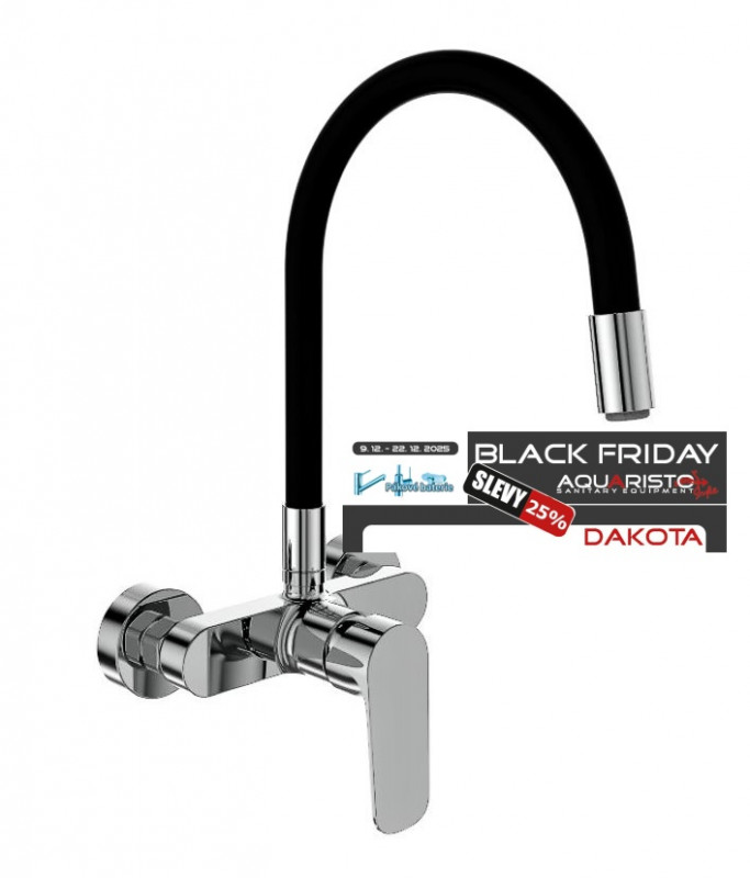 DAKOTA, dřezová stěnová baterie, flexi ramínko černé, rozteč 150mm