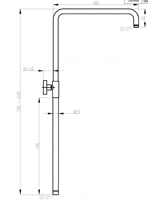 Průměr nerezové trubky 25 mm. Povrchová úprava, kvalitní chrom. Možnost nastavení výšky a vzdálenosti od zdi. Dodáváno bez pákové baterie a sprchového příslušenství. Připojení pomocí G 1/2 závitu.