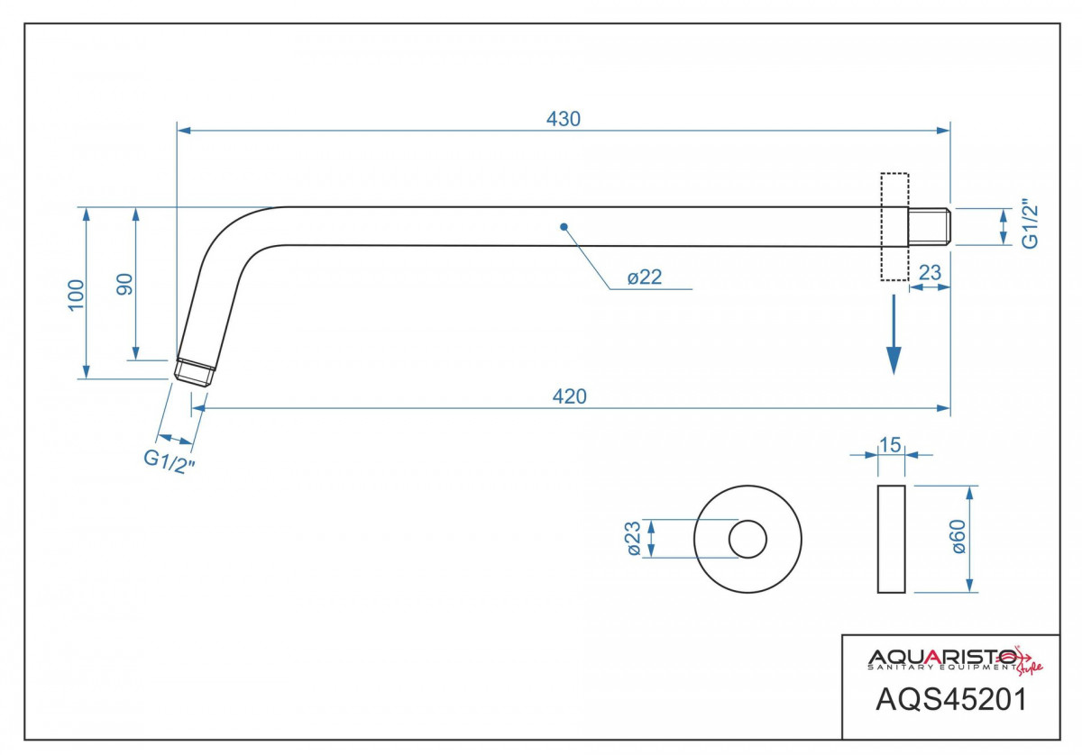 ROUND MATT BLACK, rameno pevné sprchy, délka 400 mm, kovové