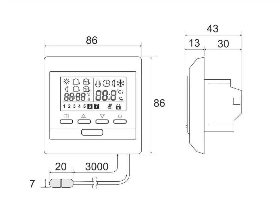 Digitální termostat s pokročilým nastavením a prodlouženým snímačem s délkou 3m.