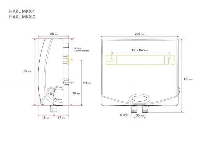 - minimální spínací tlak vody je nastaven od 0,05 Mpa (0,5 bar), což umožňuje ohřivač nainstalovat i v případě, že je napojen na vodárničku s kolísavým tlakem vody