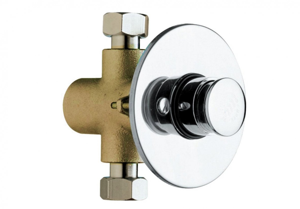 - samouzavírací podomítkový průtočný pisoárovýventil s pevně nastaveným provozním intervalem 6"+2" - připojení do rozvodu studené vody je 1/2". Je opatřen kulatým krytem