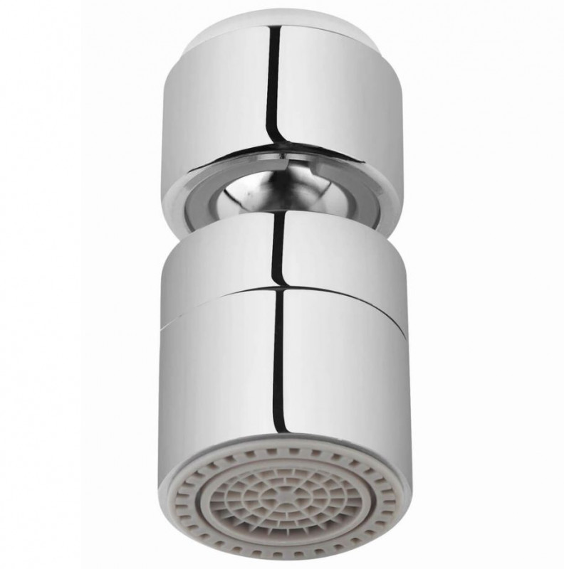 Spořič vody 2-polohový krátký s kloubem, kovový, chrom. Součástí balení je plastová redukce M24x1*M22x1, gumové těsnění.