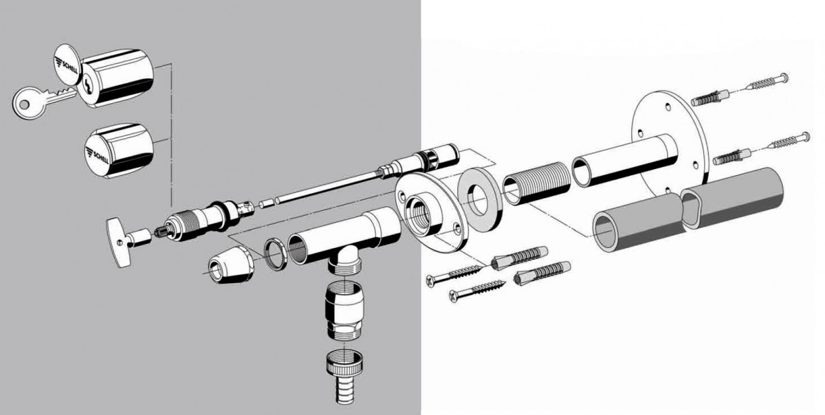 U ventilu není použito běžné ploché těsnění, ale speciální těsnicí O-kroužky, které zaručují značně delší životnost zařízení. K dispozici jsou dvě provedení rukojeti: pohledová Comfort nebo nástrčný klíč pro zabezpečení ovládání.